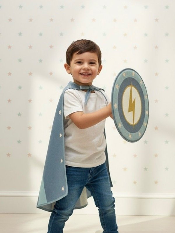 Su cierre con velcro facilita el uso, permitiendo que los niños la pongan y saquen sin ayuda. Además, el escudo armado refuerza la sensación de poder y aventura en cada juego.