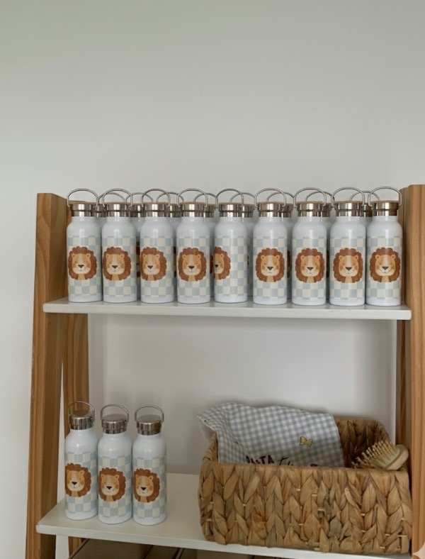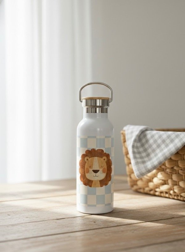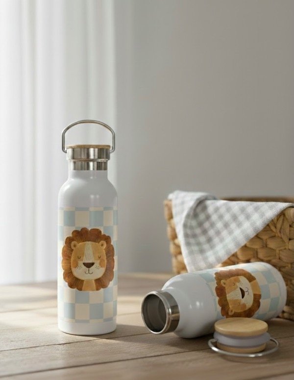Botellita térmica León - Tapa de bamboo ( se personaliza sin cargo extra)